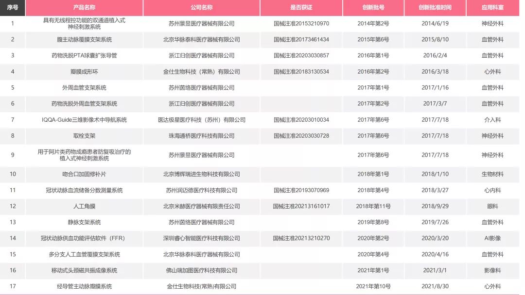 截至2022年1月18日,行業(yè)已有364個醫(yī)療器械產(chǎn)品獲得創(chuàng)新批件,其中140個創(chuàng)新產(chǎn)品獲得注冊證(見附件)。作為創(chuàng)新醫(yī)療器械和高端醫(yī)療器械優(yōu)質(zhì)服務(wù)商,奧泰康參與的項目已有17項獲得創(chuàng)新批件,其中9項產(chǎn)品獲得注冊證。