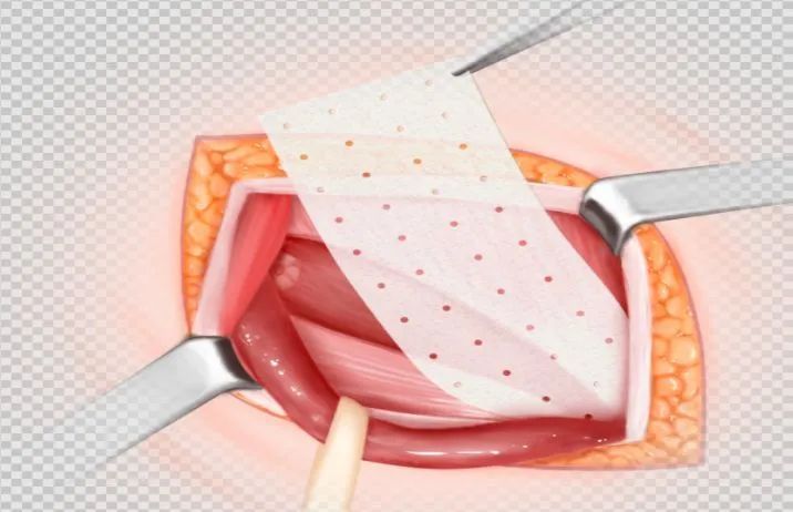 非交聯(lián)細胞外基質源生物材料(Small Intestinal Submucosa,SIS ),是采用動物小腸粘膜下層組織為原料,去除免疫原性等風險,保留天然細胞外基質的結構和活性成分,植入體內后能夠內源性誘導再生修復,實現(xiàn)組織功能再生,可完全體內降解,并具有耐受感染、防粘連等優(yōu)勢,幾乎適用于人體所有軟組織的再生修復。