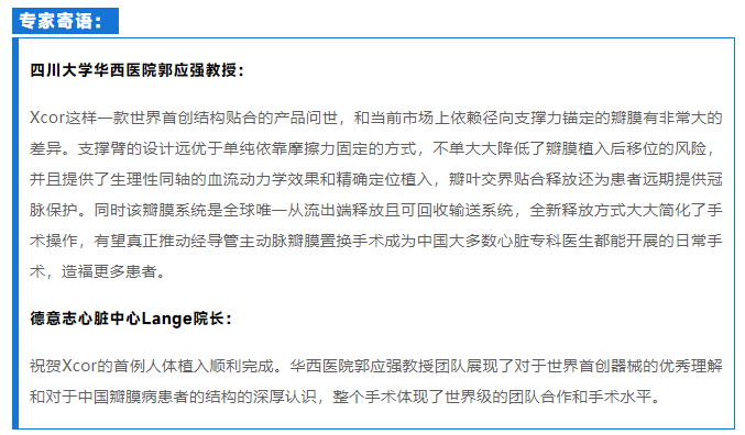 2022年5月20日,四川大學華西醫(yī)院郭應(yīng)強教授團隊成功應(yīng)用南京圣德醫(yī)療科技有限公司研制的帶結(jié)構(gòu)貼合錨定及全新釋放方式的自膨式TAVR產(chǎn)品Xcor,為一位外科高危高齡重度主動脈瓣狹窄合并中度關(guān)閉不全患者實施了經(jīng)導(dǎo)管主動脈瓣膜置換手術(shù)。該例手術(shù)也標志著,由四川大學華西醫(yī)院郭應(yīng)強教授牽頭的全國多中心研究正式起航。