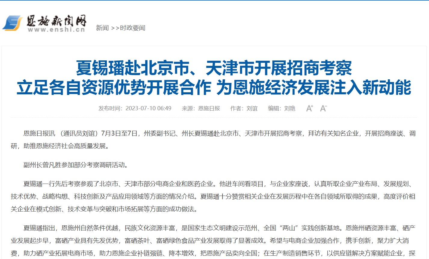 7月,恩施州州委副書(shū)記、州長(zhǎng)夏錫璠,副州長(zhǎng)曾凡勝,州政府秘書(shū)長(zhǎng)程飛一行蒞臨奧泰康北京總部考察調(diào)研,奧泰康期待借助自身CRO在醫(yī)藥科技成果轉(zhuǎn)化方面的豐富經(jīng)驗(yàn)與優(yōu)勢(shì),助力恩施州傳統(tǒng)中醫(yī)藥和硒產(chǎn)品的新藥科技成果轉(zhuǎn)化,實(shí)現(xiàn)優(yōu)勢(shì)互補(bǔ)、資源共享、共同推動(dòng)生物醫(yī)藥行業(yè)高質(zhì)量發(fā)展。