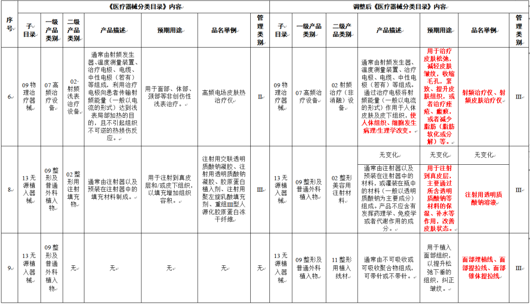 醫(yī)美注射類產(chǎn)品是國(guó)家近年來重點(diǎn)監(jiān)管領(lǐng)域,隨著水光針產(chǎn)品的火熱和市場(chǎng)的良莠不齊,產(chǎn)品濫用、超適應(yīng)癥范圍使用情況增多,國(guó)家藥監(jiān)局標(biāo)管中心出臺(tái)政策規(guī)范了對(duì)于水光針產(chǎn)品的監(jiān)管標(biāo)準(zhǔn)。2022年3月30日,國(guó)家藥監(jiān)局發(fā)布實(shí)施《關(guān)于調(diào)整<醫(yī)療器械分類目錄>部分內(nèi)容的公告(2022年第30號(hào))》,對(duì)部分醫(yī)美產(chǎn)品監(jiān)管類別作出調(diào)整,其中明確注射用透明質(zhì)酸鈉溶液按照III類器械進(jìn)行監(jiān)管。政策的落地,促使生產(chǎn)廠家積極申報(bào)III類醫(yī)療器械注冊(cè)證,具有III類醫(yī)療器械注冊(cè)證的水光產(chǎn)品有望加速上市。