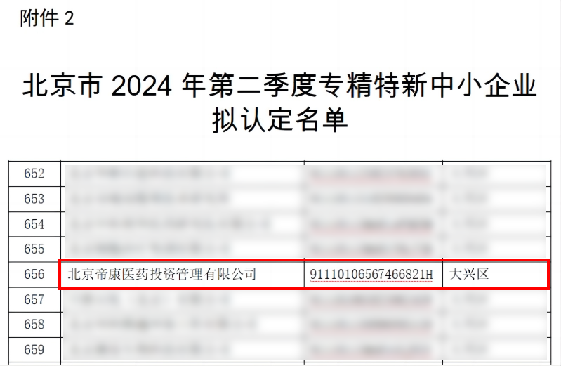 2024年8月8日,北京市經濟和信息化局發(fā)布通知公告《關于對北京市2024年度第二季度專精特新中小企業(yè)名單進行公示的通知》,奧泰康北京CDMO中心(北京帝康醫(yī)藥投資管理有限公司)被成功認定為北京市“專精特新”中小企業(yè),這也是繼國家高新技術企業(yè)、中關村高新技術企業(yè)、北京市創(chuàng)新型中小企業(yè)之后獲得的又一項重要資質。