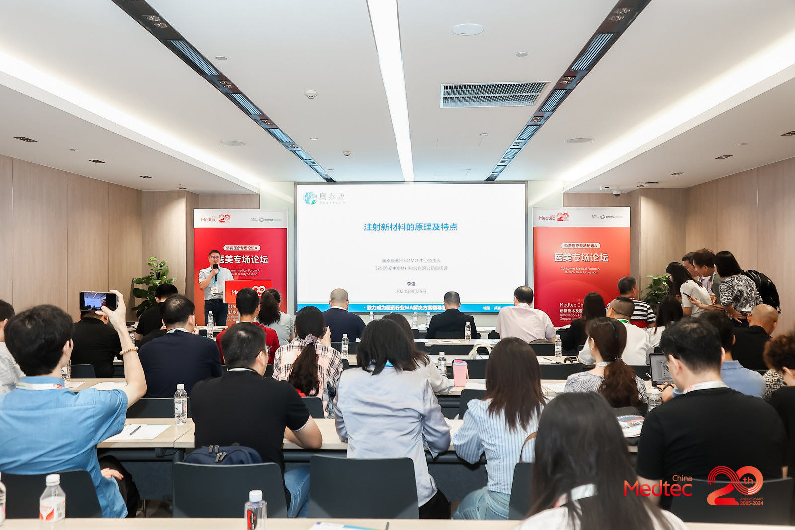 Medtec China 2024圓滿落幕,創(chuàng)新引領(lǐng),共筑發(fā)展新篇章——期待與您攜手共進(jìn)??9月27日,上海世博展覽館,Medtec China 2024暨第十八屆國(guó)際醫(yī)療器械設(shè)計(jì)與制造技術(shù)展覽會(huì)落下帷幕,這一盛會(huì)匯集了來(lái)自全球各地的頂尖企業(yè)、科研機(jī)構(gòu)及行業(yè)專家。奧泰康作為參展商受邀參加會(huì)議,在醫(yī)美專場(chǎng)論壇中,奧泰康蘇州CDMO中心負(fù)責(zé)人、蘇州蘇豪生物材料科技有限公司總經(jīng)理李強(qiáng)以《注射新材料的原理及特點(diǎn)》為主題進(jìn)行分享,與行業(yè)伙伴共同探索醫(yī)療器械領(lǐng)域的最新趨勢(shì)與未來(lái)發(fā)展方向。