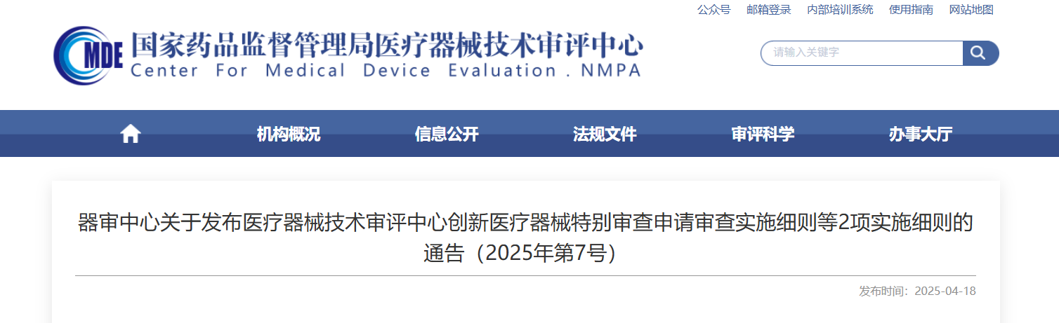 新政速遞,器審中心發(fā)布「創(chuàng)新醫(yī)療器械特別審查申請審查實(shí)施細(xì)則和醫(yī)療器械優(yōu)先審批申請審核實(shí)施細(xì)則」有關(guān)事項(xiàng)的通告為深入貫徹黨的二十屆三中全會精神,落實(shí)《國務(wù)院辦公廳關(guān)于全面深化藥品醫(yī)療器械監(jiān)管改革促進(jìn)醫(yī)藥產(chǎn)業(yè)高質(zhì)量發(fā)展的意見》(國辦發(fā)〔2024〕53號)要求,進(jìn)一步優(yōu)化創(chuàng)新審查和優(yōu)先審批工作,加強(qiáng)申請人和審查專家的溝通,強(qiáng)化對創(chuàng)新醫(yī)療器械和優(yōu)先審批醫(yī)療器械研發(fā)和注冊的技術(shù)指導(dǎo),引導(dǎo)申請人開展?jié)M足臨床需求的創(chuàng)新醫(yī)療器械設(shè)計(jì)開發(fā),根據(jù)《國家藥監(jiān)局關(guān)于發(fā)布創(chuàng)新醫(yī)療器械特別審查程序的公告》(2018年第83號)《食品藥品監(jiān)管總局關(guān)于發(fā)布醫(yī)療器械優(yōu)先審批程序的公告》(2016年第168號),器審中心制定了《醫(yī)療器械技術(shù)審評中心創(chuàng)新醫(yī)療器械特別審查申請審查實(shí)施細(xì)則》《醫(yī)療器械技術(shù)審評中心醫(yī)療器械優(yōu)先審批申請審核實(shí)施細(xì)則》,現(xiàn)予發(fā)布。