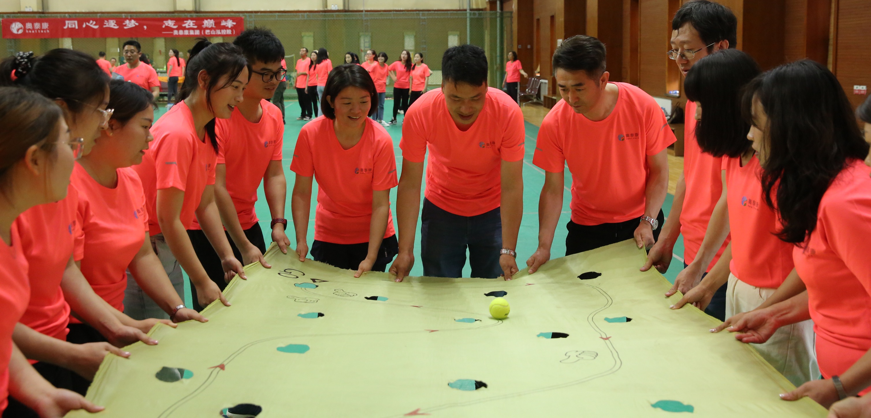 各隊發(fā)揮團體創(chuàng)造力和集體智慧,完成了以【公司logo+活動主題“同心逐夢、志在巔峰”和公司的使命愿景及企業(yè)精神】為主題的繪畫創(chuàng)作,氣勢恢宏的巨幅畫作震撼人心,感動了在場的每一位奧泰康人。