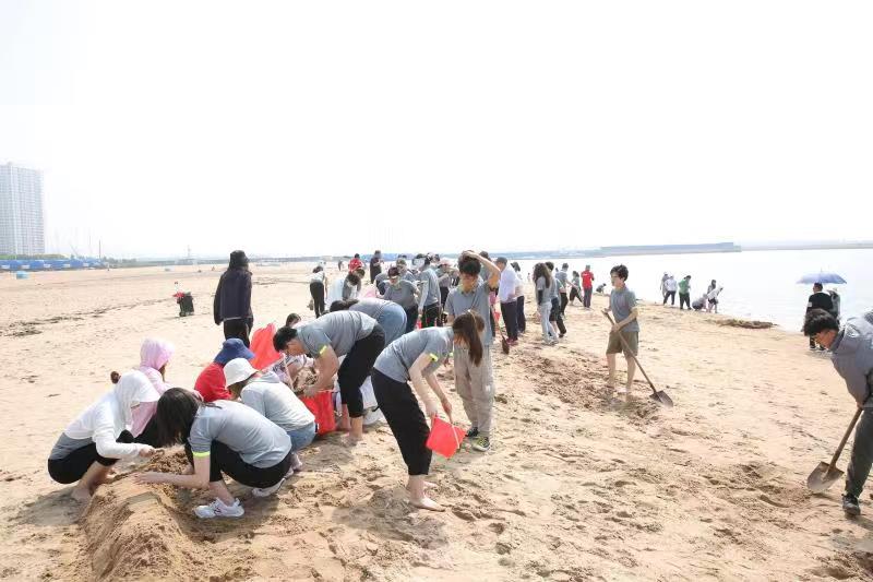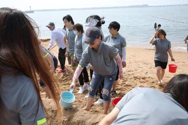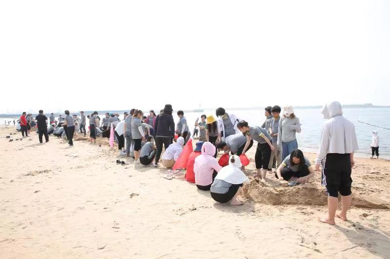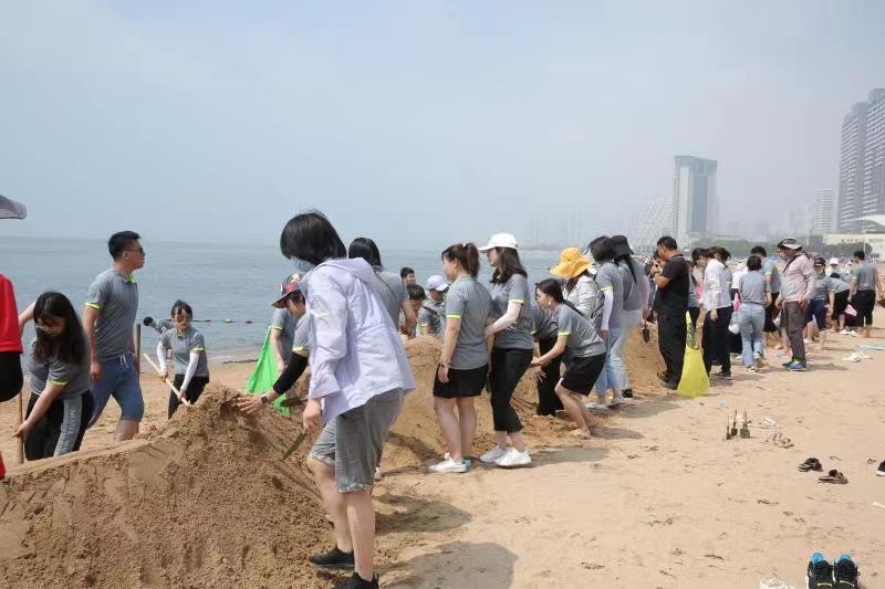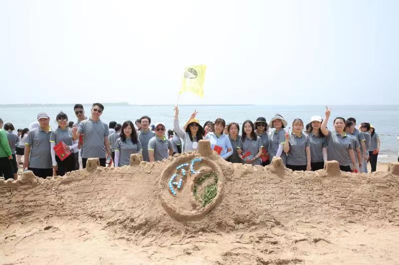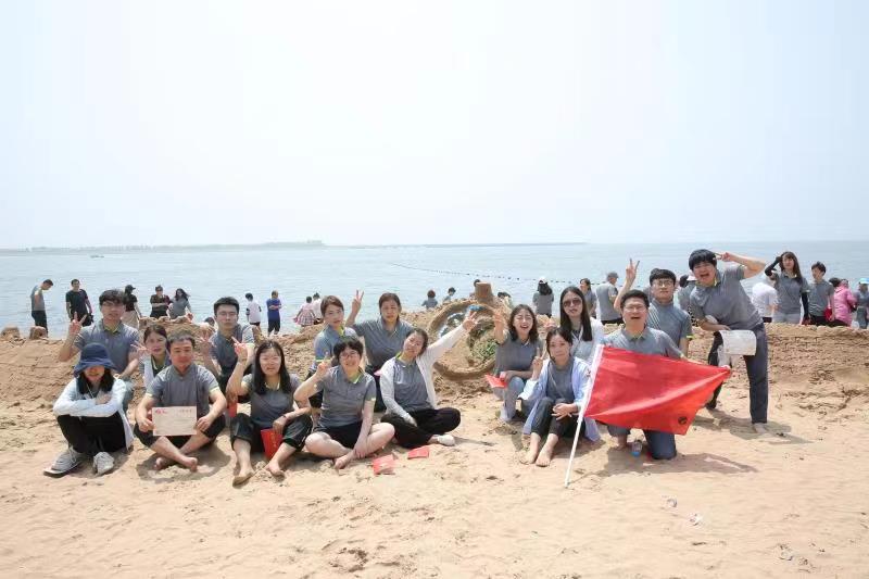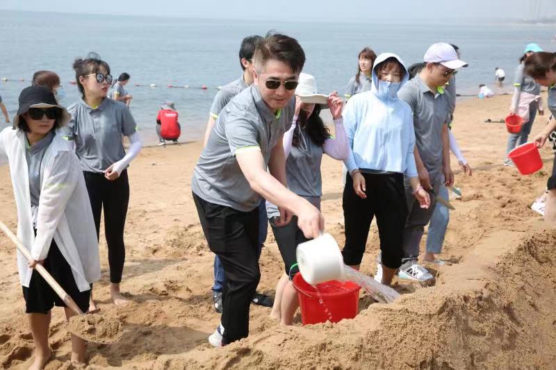 海邊沙灘,全體奧泰康人共同構筑了一座長40余米、高1米的沙雕長城,每組隊員分工明確—鏟沙、運水、堆砌,聚沙成塔,經過兩小時的共同搭建,眾志成城,一座巍峨壯闊的沙雕長城矗立在沙灘上。